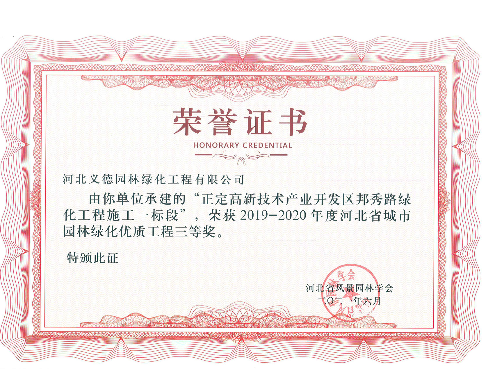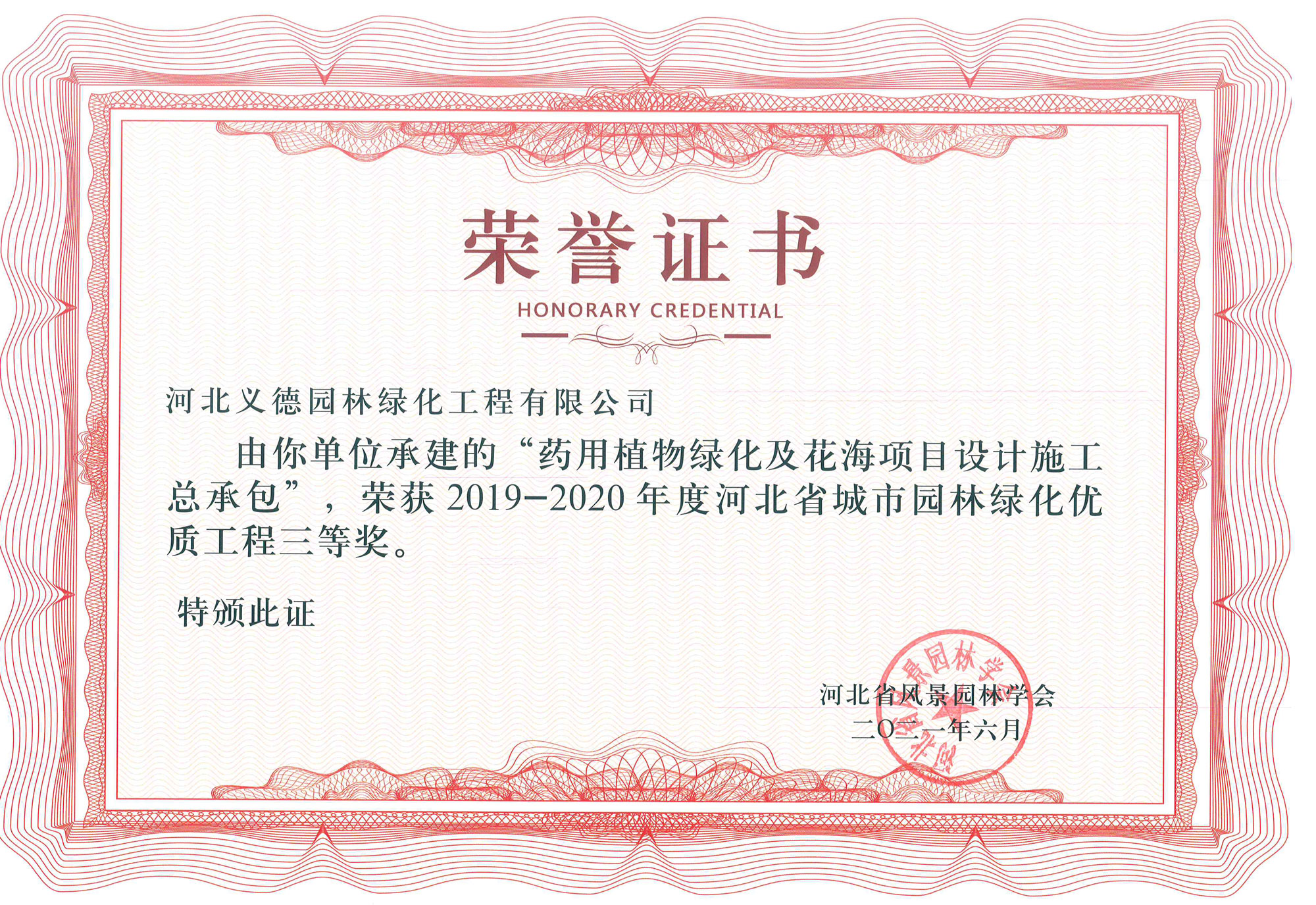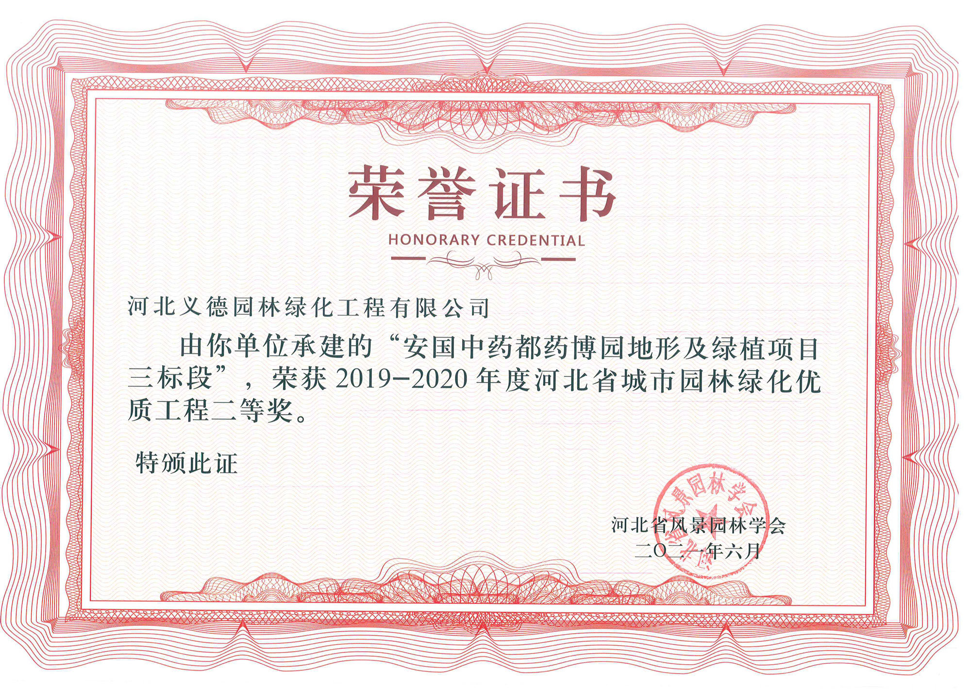 工程業(yè)績榮獲有2017-2018年度河北省城市園林綠化優(yōu)質(zhì)工程二等獎(jiǎng)兩個(gè);2019-2020年度河北省城市園林綠化優(yōu)質(zhì)工程二等獎(jiǎng)兩個(gè)、三等獎(jiǎng)兩個(gè);2018至2020年保定市燕趙杯優(yōu)質(zhì)工程五個(gè);2020年度石家莊市優(yōu)質(zhì)工程一個(gè)。