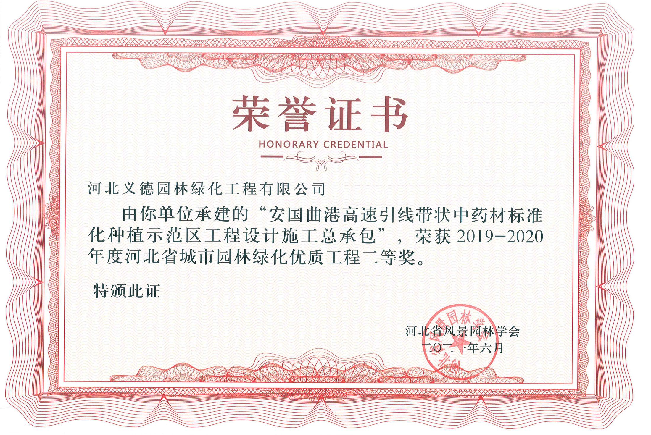 近幾年來我公司被授予2019年-2022年河北省扶貧龍頭企業(yè)、2018年國家林業(yè)標(biāo)準(zhǔn)化示范企業(yè)、2019年度全國苗圃50強(qiáng)、2018-2019年度河北省林業(yè)重點(diǎn)龍頭企業(yè)、2018年保定市精品特色現(xiàn)代農(nóng)業(yè)園區(qū)、2018年度保定林木種苗協(xié)會授予特色苗圃、2018年度北方十佳特色苗圃、2016-2019年河北省建設(shè)工程招標(biāo)投標(biāo)誠實(shí)守信5A級施工企業(yè)等榮譽(yù)稱號,2017年保定市林木種苗龍頭企業(yè)、石家莊市2017年度優(yōu)秀園林企業(yè)。